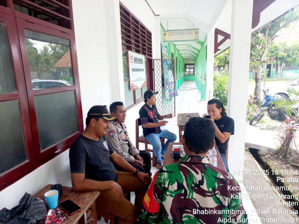 Suara62.id || Tangerang – Bhabinkamtibmas Polsek Balaraja Polresta Tangerang Aipda Guntur Pratama SH melaksanakan kegiatan Cooling System, Door to Door System (DDS), serta sambang kepada Bpk Yopi Koslaniyudin selaku Kades Desa Perahu dan Masyarakat di Kantor Desa Perahu Kecamatan Sukamulya Kab. Tangerang. Selasa (14/10/2025).