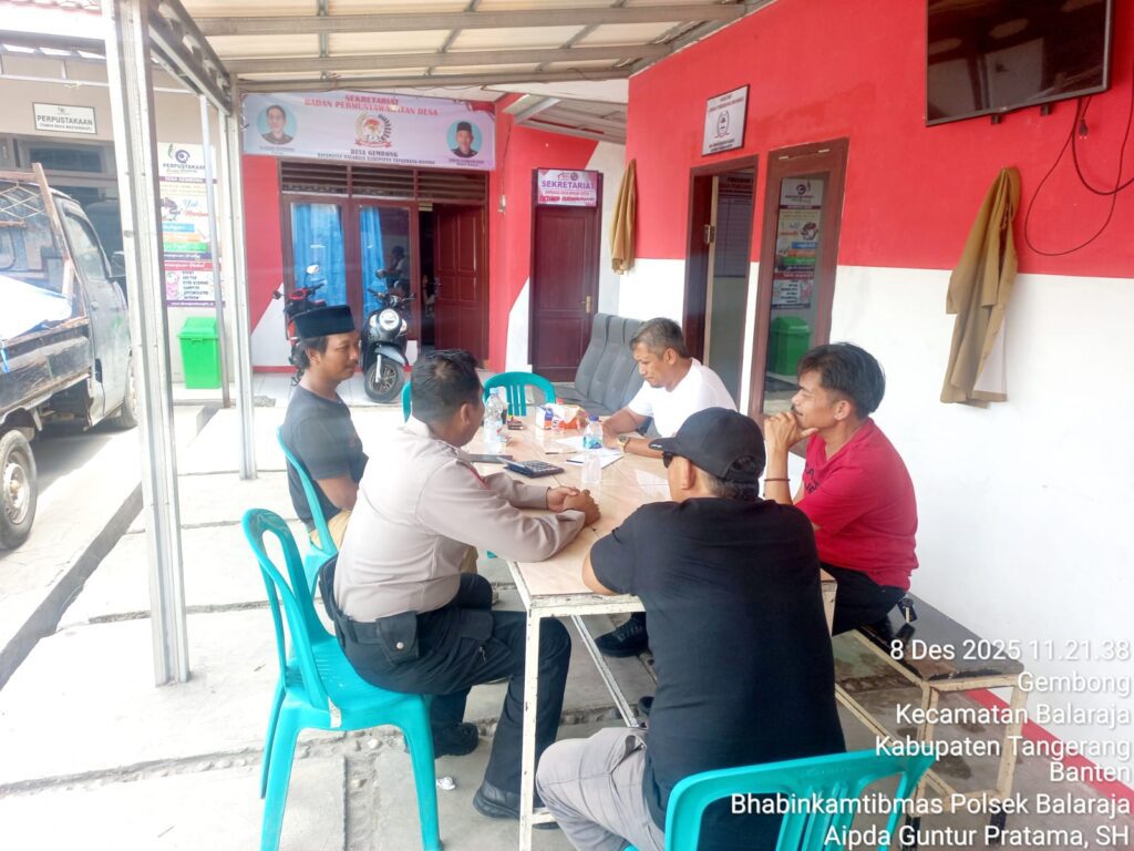 Suara62.id || TANGERANG – Bhabinkamtibmas Polsek Balaraja Aipda Guntur Pratama SH melaksanakan kegiatan (Colling System), Door to Door System (DDS), kepada Bpk H. Nurjen selaku Sekdes Gembong serta sambang kepada Staf dan Masyarakat di Kantor Desa Gembong Kecamatan Balaraja, sebagai upaya menjaga dan memelihara situasi keamanan dan ketertiban masyarakat. Senin (08/12/2025).