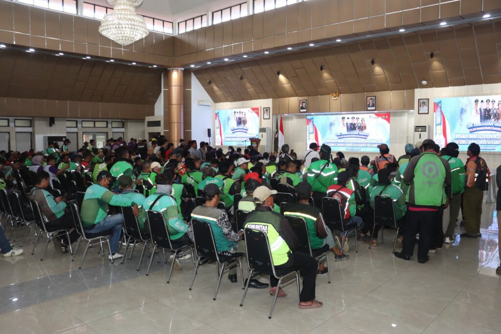 Pada Apel itu, perwakilan ojol dan opang serta buruh membacakan deklarasi komitmen untuk berperan aktif menjaga dan memelihara kamtibmas.