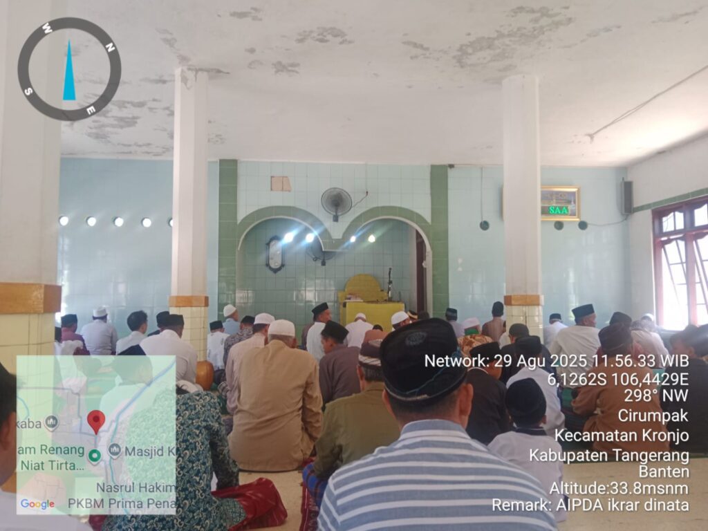 Suara62.id || Kabupaten Tangerang – Anggota Bhabinkamtibmas Polsek Balaraja Aipda Ikrar D. melaksanakan Ibadah Sholat Jum’at Keliling dan Sambang Tokoh Agama beserta Jamaah Sholat Jum’at di Masjid I Habililah RT 01/01 Desa Buniayu Kecamatan Sukamulya Kab. Tangerang. Jum’at (29/07/2025).