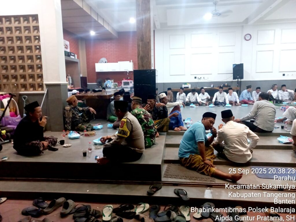 Suara62.id || Kabupaten Tangerang – Bhabinkamtibmas Polsek Balaraja Polresta Tangerang Aipda Guntur Pratama SH. menghadiri kegiatan pengajian rutin malam Jumat yang berlokasi di Rumah Kades Perahu Kp Leuweung Gede RT 02/03 Desa Perahu, Kecamatan Sukamulya. Kab. Tangerang. Kamis (25/09/2025).