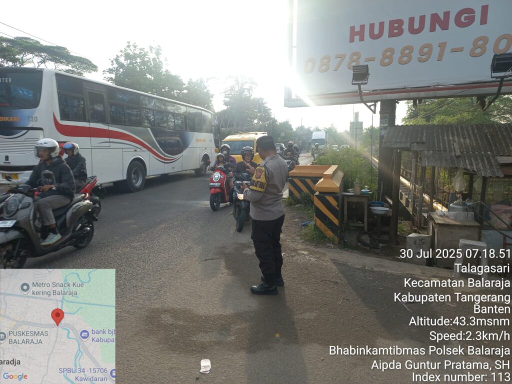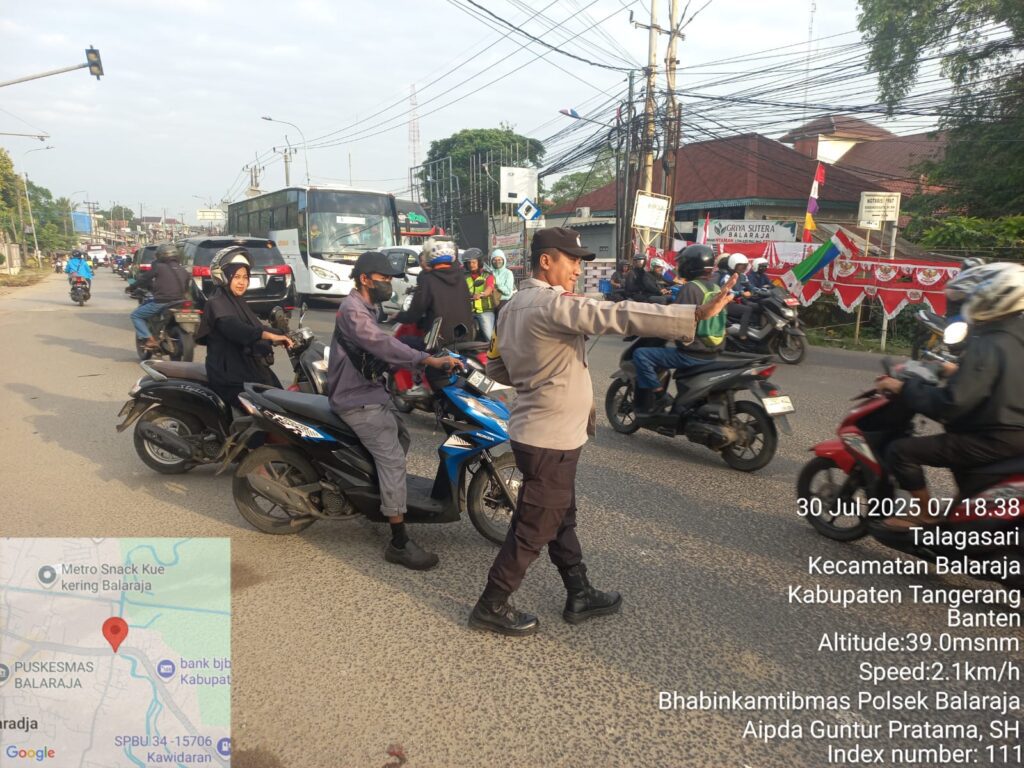 Suara62.id || Kabupaten Tangerang – Dalam rangka menciptakan Keamanan, Keselamatan, Ketertiban dan Kelancaran Lalulintas (Kamseltibcar Lantas), Bhabinkamtibmas Aipda Guntur P. dari Polsek Balaraja melaksanakan kegiatan Gatur Lalin sore hari di Jln Raya Serang Depan Kecamatan Balaraja Wilayah Hukum Polsek Balaraja Polresta Tangerang. Rabu (30/07/2025)