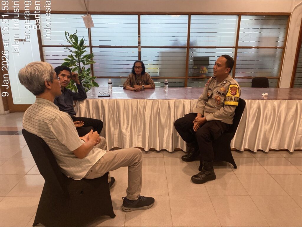 Suara62.id | Tangerang — Dalam rangka menjaga situasi keamanan dan ketertiban masyarakat agar tetap aman dan kondusif, Bhabinkamtibmas Kelurahan Bunder Polsek Cikupa melaksanakan kegiatan himbauan kamtibmas terkait rencana Perayaan Ibadah Natal PLPN di PT Choosen Mitra Abadi (Bocoroco), Jumat (9/1/2026).