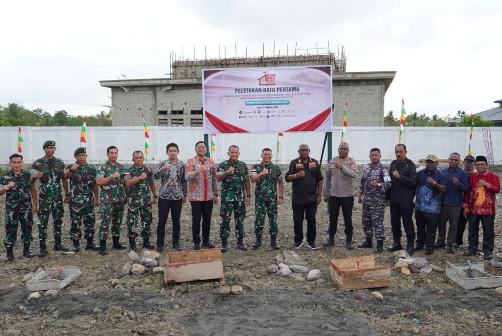 Suara62.id || Timika – Bertempat di Kampung Limau Asri Timur, Sp.5, Distrik Iwaka, Kab. Mimika, Dandim 1710/Mimika Letkol Inf M. Slamet Wijaya, S.Sos,.M.Han,.M.A mendampingi Kasdam XVII/Cenderawasih Brigjen TNI Thevi Angandowa Zebua dalam kegiatan Gerakan Nasional Groundbreaking Koperasi Merah Putih yang secara resmi dimulai serentak di seluruh Indonesia hari ini melalui video conference (vidcon) bersama Menteri Koperasi, Ferry Joko Juliantono, Jumat (17/10/2025).