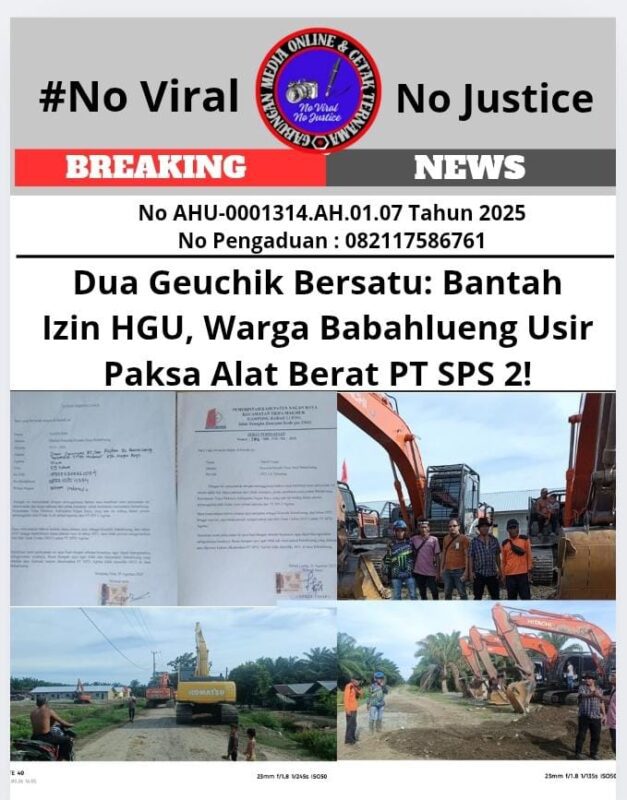 Suara62.id || Nagan Raya (GMOCT) – Gelombang penolakan terhadap praktik mafia tanah kembali menggema di Nagan Raya. Warga Desa Babahlueng, berbekal pernyataan tegas dari dua Geuchik—mantan dan yang sedang menjabat—bersatu padu mengusir alat berat milik PT Surya Panen Subur (SPS) 2 dari lahan yang disengketakan. Aksi heroik ini merupakan puncak kekesalan warga atas klaim perusahaan yang dianggap tidak berdasar.