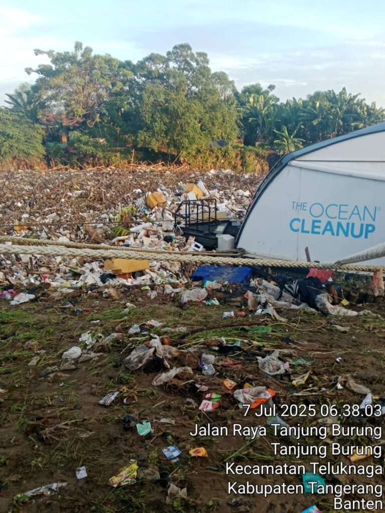 Suara62.id || Tangerang – Pemandangan memilukan terlihat di bantaran Sungai Cisadane, tepatnya di wilayah Tanjung Burung, Kecamatan Teluknaga, Kabupaten Tangerang, Banten, pada senin pagi (7/7). Tumpukan sampah plastik, kayu, dan limbah rumah tangga tampak mengapung memenuhi badan sungai. Aliran air tersumbat dan lingkungan sekitar tercemar parah. Senin (7 Juli 2025).