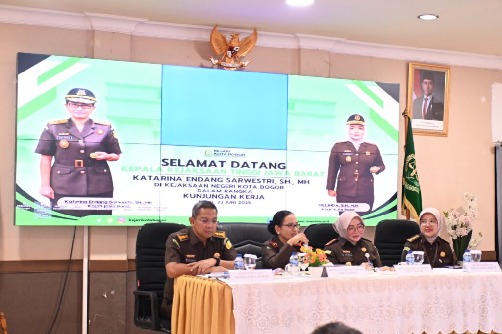Suara62.id || Bogor – cibinong Kajati Jabar Katarina Endang Sarwestri, S.H.,M.H melakukan rangkaian kunjungan kerja ke Kejaksaan Negeri Depok dilanjutkan ke Kejaksaan Negeri Kabupaten Bogor dan Kota Bogor (23/06/25).