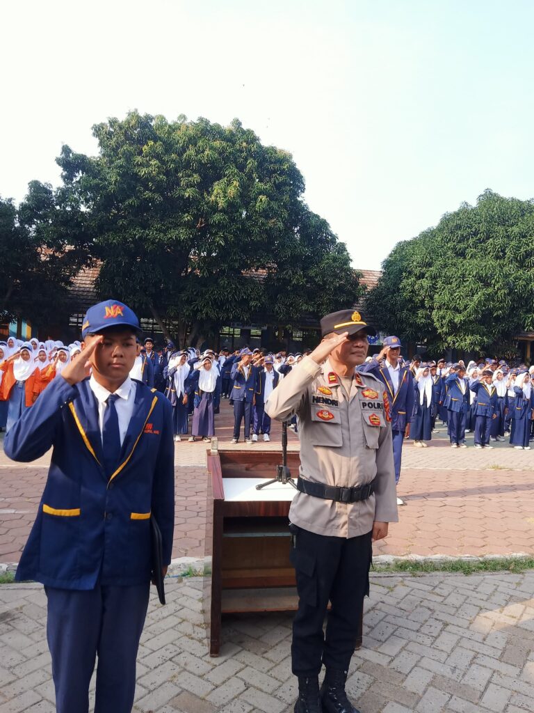 Suara62.id || Kabupaten Tangerang – Kanit Reskrim Polsek Kronjo, IPTU Hendri Mulayana, S.IP, didapuk menjadi pembina upacara bendera di SMK dan SMP Nurul Amin, Kecamatan Mekarbaru, Kabupaten Tangerang, Senin (29/9/2025).