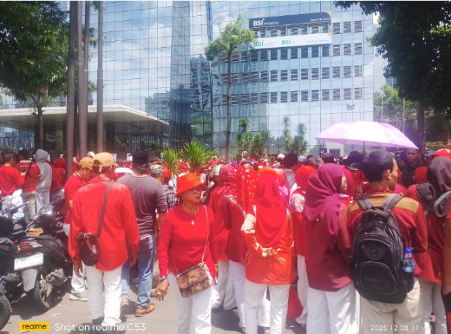Suara62.id || JAKARTA – Kantor pusat BSI (Bank Syariah Indonesia) yang berlokasi di Jalan Gatot Subroto Kelurahan Karet Semanggi, Kecamatan Setiabudi, Kota Jakarta Selatan, digeruduk puluhan juta masyarakat yang berpakaian serba merah putih untuk mewakili bangsa Indonesia demi mendapatkan dana hibah untuk kepentingan pemerintah dan masyarakat.