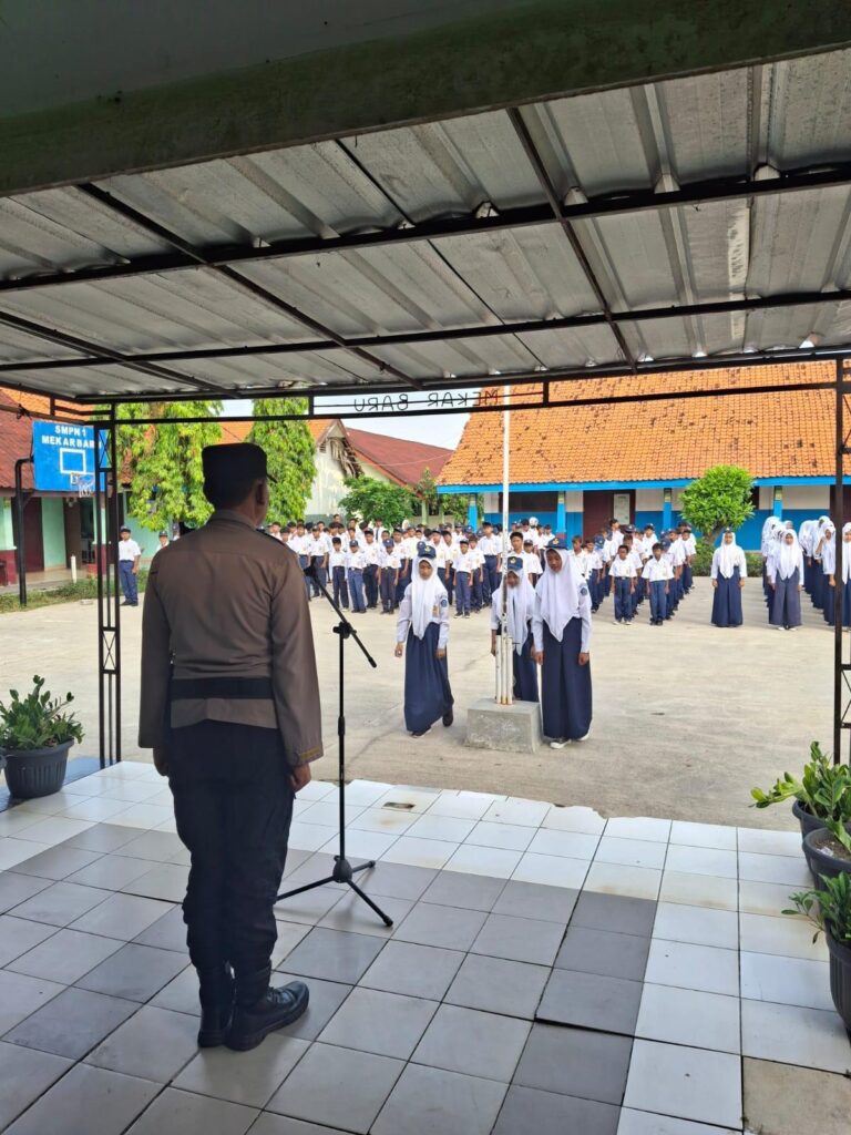 Suara62.id || Kabupaten Tangerang – Kapolsek Kronjo, AKP I Nyoman Nariana, S.M., S.Pd, bertindak sebagai pembina upacara bendera di SMPN 1 Mekar Baru, Kecamatan Mekar Baru, Kabupaten Tangerang, Senin (15/9/2025).
