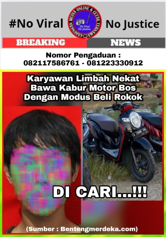 Menurut Nono, kejadian bermula ketika DN meminjam motor dengan alasan hendak membeli rokok. “Benar, DN ini karyawan saya sendiri. Dia bawa kabur motor dengan alasan mau jemput istrinya,” ujar Nono, Kamis (2/10/2025).