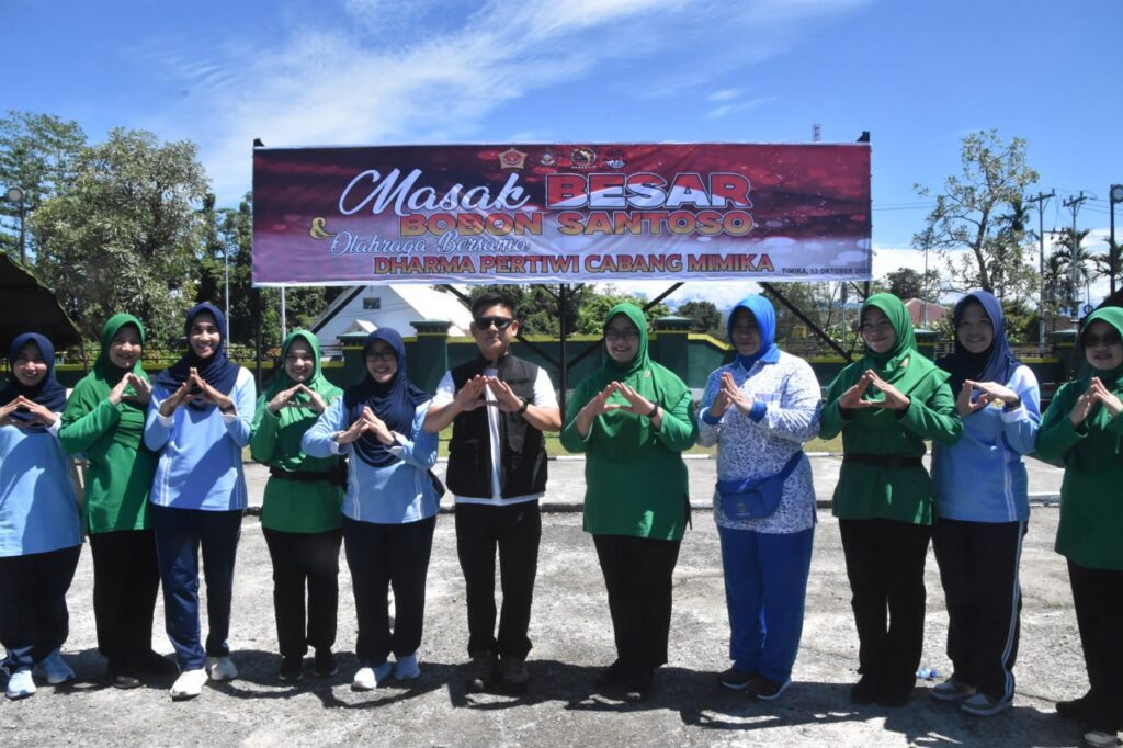 Suara62.id || Timika – Bertempat di Lapangan Upacara Makodim 1710/Mimika, Kodim 1710/Mimika bersama Kogabwilhan III berkolaborasi dengan Youtuber Bobon Santoso menggelar Masak Besar dan Olahraga Bersama Dharma Pertiwi Cabang Mimika, Senin (13/10/2025).