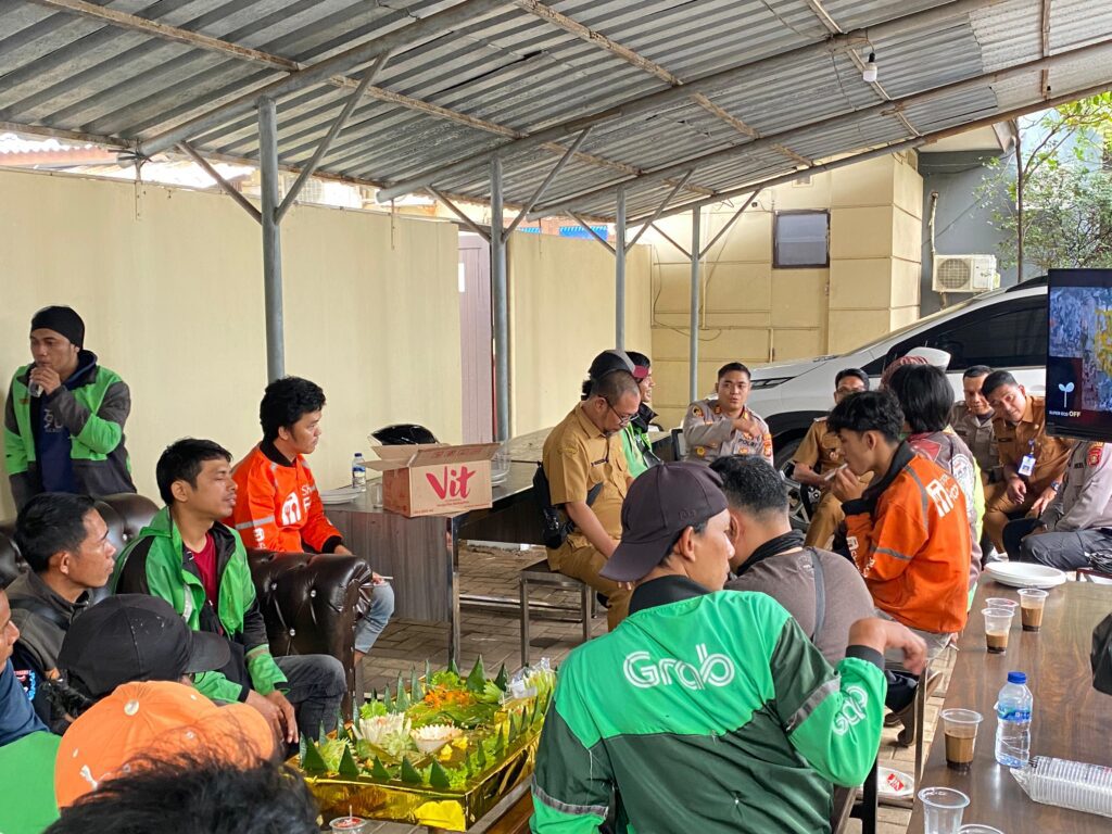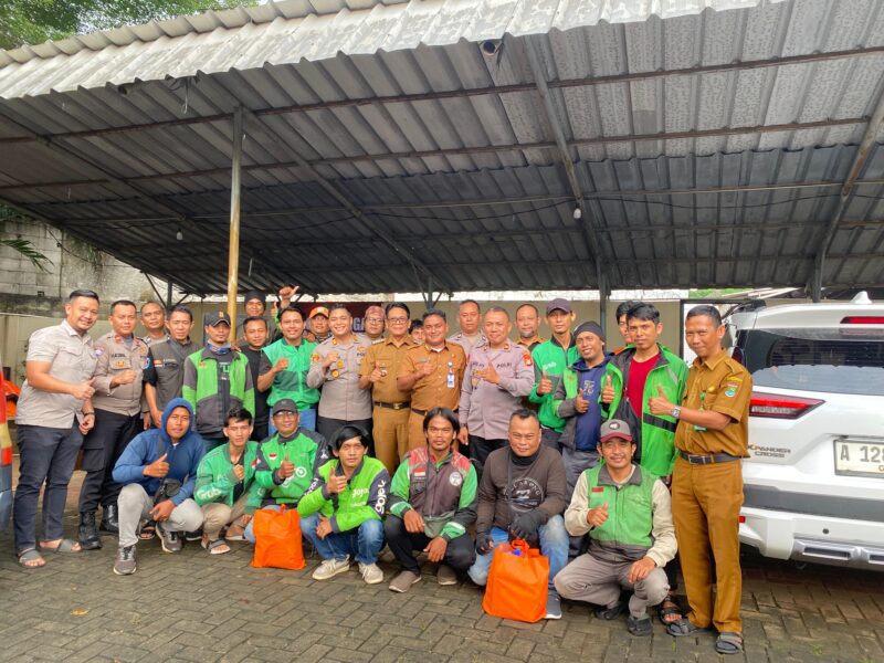 Suara62.id || Tangerang – Polsek Pagedangan Polres Tangerang Selatan bersama pemerintah kecamatan menggelar kegiatan makan siang bersama OJol (Ojel Online) dan pembagian paket sembako untuk 50 lebih pengemudi Ojol di depan Mako Polsek Pagedangan. Senin, 08/09/2025.
