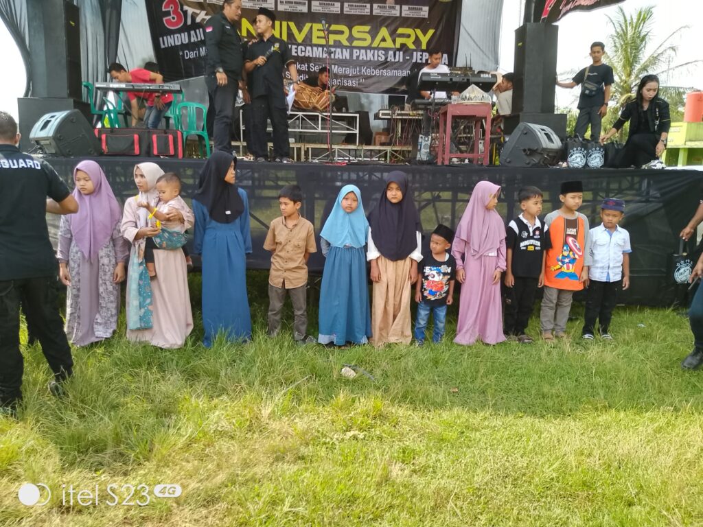 Suara62.id || Jepara – Diusianya yang ke -3 tahun 2025 ini,Ormas Lindu Aji Singo Lodro Pakis Aji menggelar 3 Tahun Anniversary dengan Tema : ” Dari Masyarakat Untuk Masyarakat,Serta Merajut Kebersamaan dan Membangun Soliditas Organisasi ” yang disertai dengan kegiatan Bakti Sosial ( Baksos) dengan menyantuni anak Yatim – Piatu,yang bertempat di Lapangan,Desa Lebak, Kecamatan Pakis Aji, Kabupaten Jepara, Minggu ( 18/5/2025) pukul 12.00 WIB – selesai