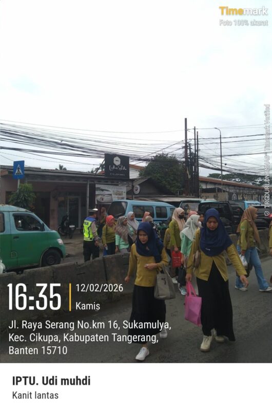 Suara62.id || Cikupa — Personel Lantas Polsek Cikupa Polresta Tangerang melaksanakan kegiatan PECAK berupa pengaturan arus lalu lintas pada Kamis (12/2/2026) di Jalan Raya Serang, Pertigaan Columbus PT Cingluh, wilayah hukum Polsek Cikupa.