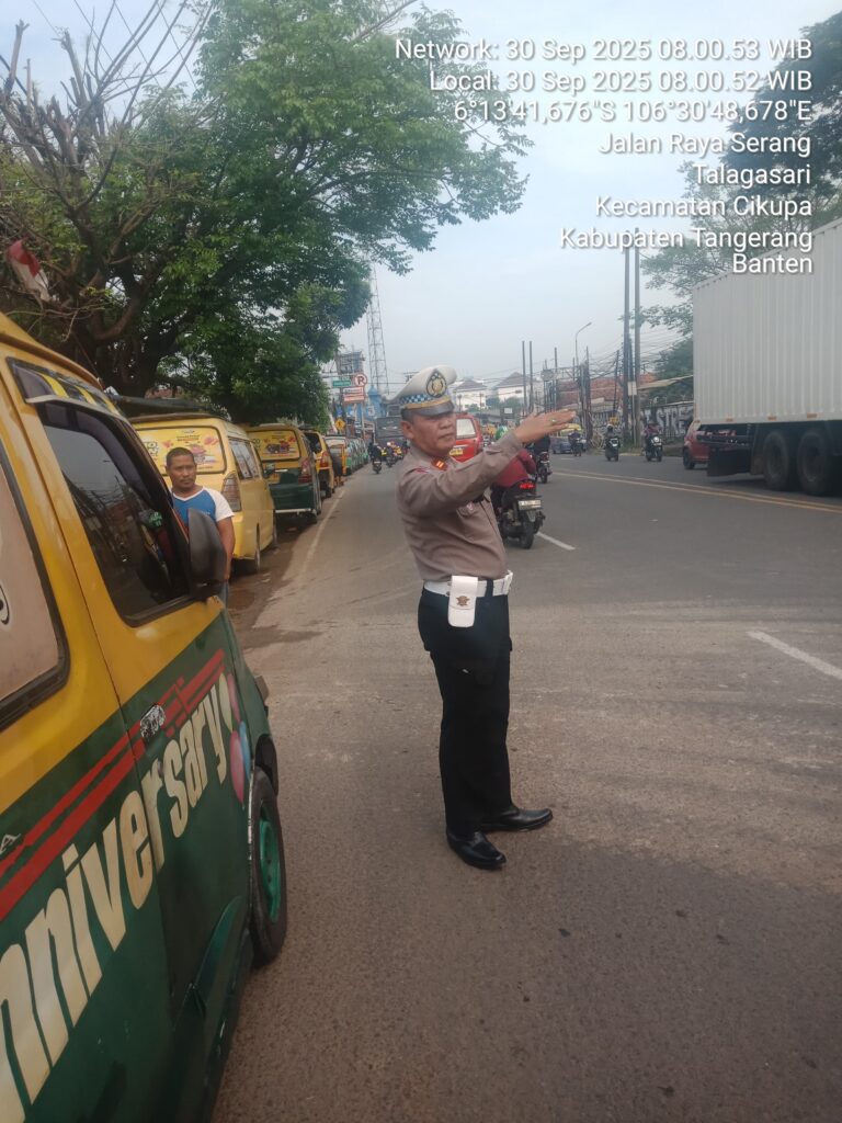 Suara62.id || Kabupaten Tangerang – Selasa, 30 September 2025, personel Lantas Polsek Cikupa Polresta Tangerang melaksanakan pengaturan arus lalu lintas (PECAK) pagi hari di Jalan Raya Serang, tepatnya Pertigaan Columbus PT. Cingluh, mulai pukul 06.30 hingga 08.00 WIB.