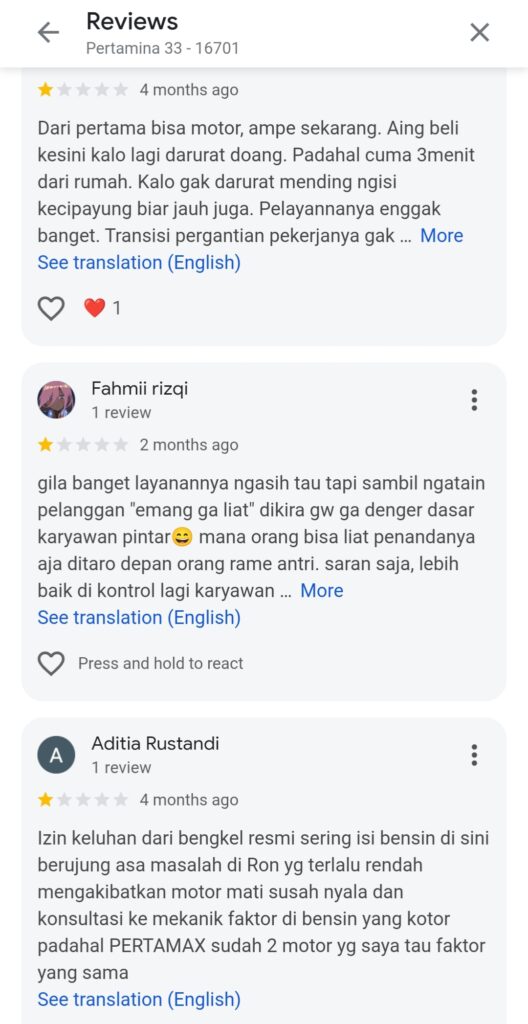 “Ini sudah dua kali saya mendapatkan perlakuan yang tidak menyenangkan di SPBU ini. Petugasnya acuh, tidak ramah, dan terkesan angkuh. Sikap seperti ini sangat disayangkan karena pelayanan SPBU seharusnya mengutamakan kenyamanan pelanggan,” ujar narasumber.