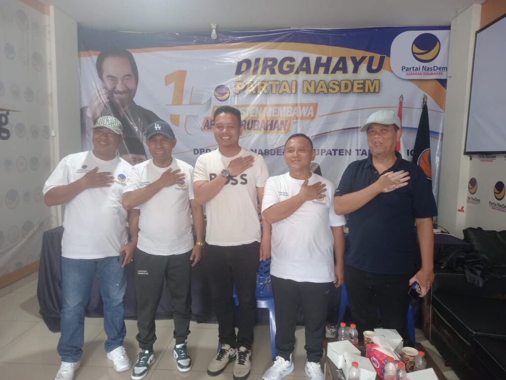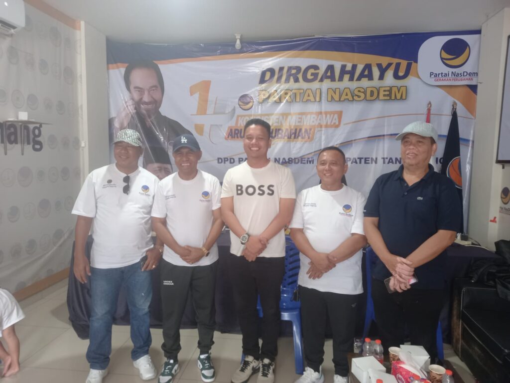 Suara62.id || Kab Tangerang – Dalam rangka memperingati Hari Ulang Tahun (HUT) ke-14 Partai NasDem, Dewan Pimpinan Daerah (DPD) Partai NasDem Kabupaten Tangerang menggelar acara syukuran yang berlangsung di Kantor DPD Partai NasDem Kabupaten Tangerang, Ruko Bizstreet Villagio Citra Raya Blok WF 09/5, Desa Ciakar, Kecamatan Panongan, Minggu (9/11/2025).