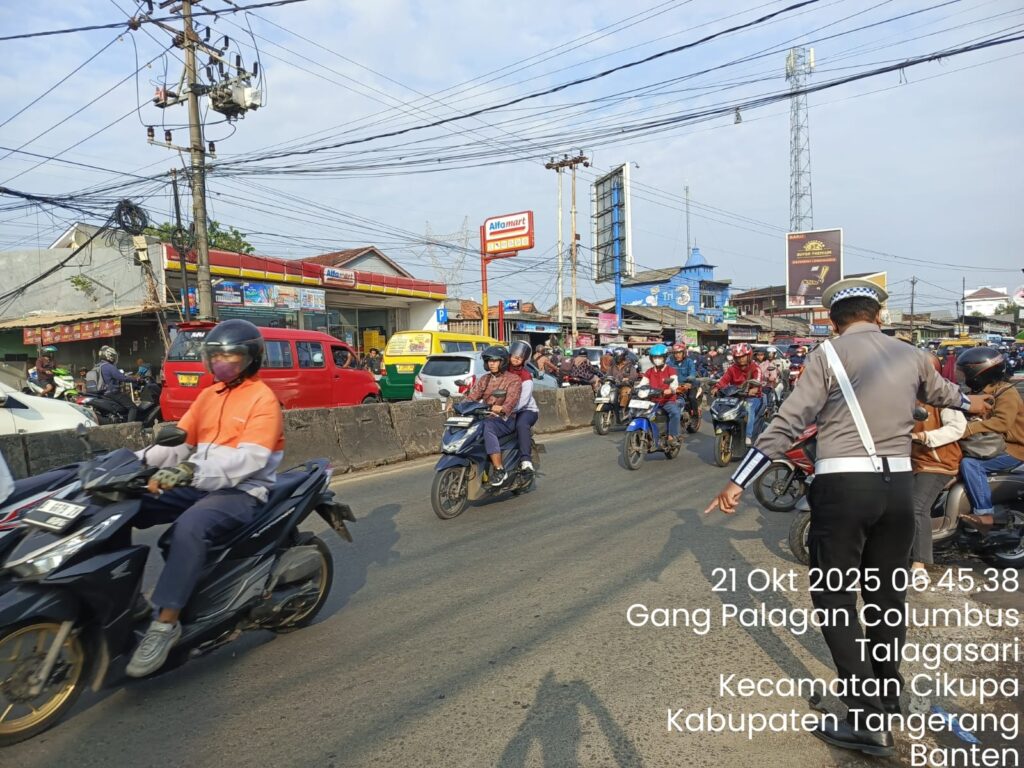 Suara62.id || Tangerang – Dalam rangka menjaga kelancaran arus lalu lintas dan menciptakan keamanan, keselamatan, ketertiban, serta kelancaran berlalu lintas (Kamseltibcar Lantas), personel Lantas Polsek Cikupa Polresta Tangerang melaksanakan kegiatan PECAK (Pengaturan dan Cegah Kemacetan) pada Selasa (21/10/2025) pukul 06.30–08.00 WIB.