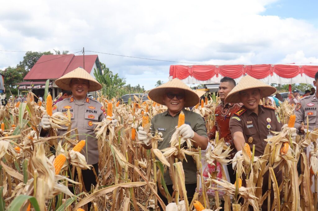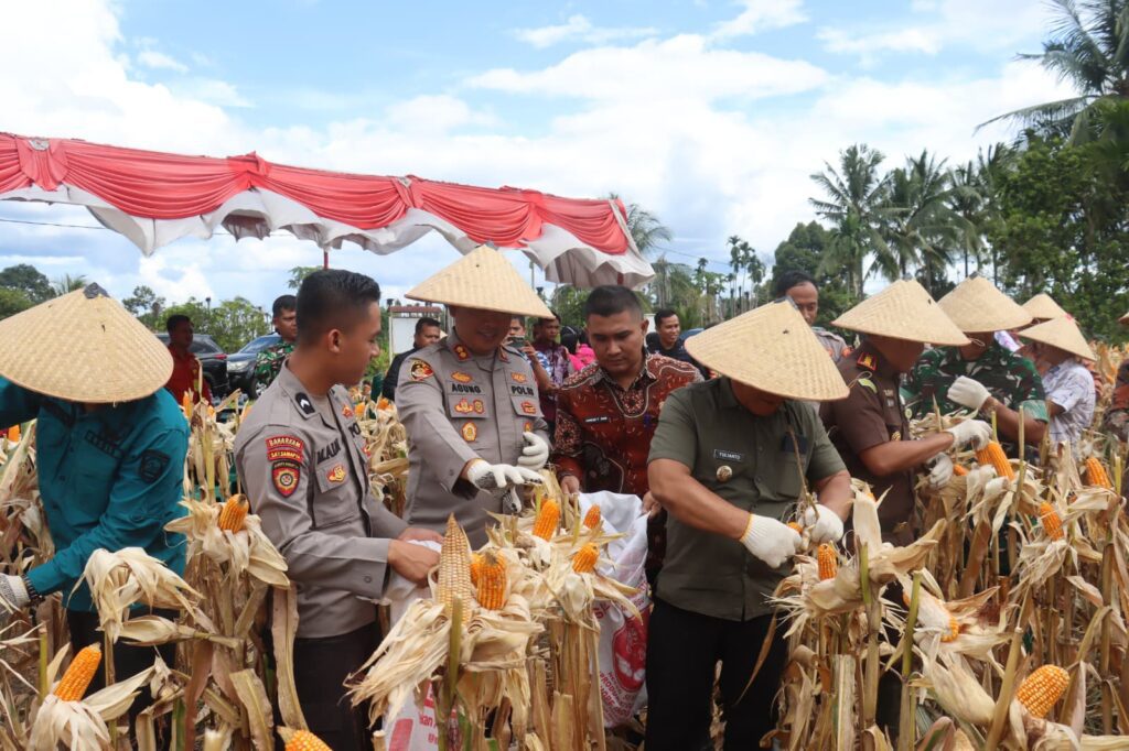 Bersamaan dengan kegiatan panen raya jagung secara serentak kuartal II, Polres Pasaman Barat bersama Forkopimda melaksanakan panen jagung di lahan pertanian milik masyarakat setempat seluas dua hektar.