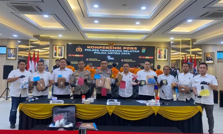 PristiwaNews | Polres Tangsel – Satuan Reserse Narkoba Polres Tangerang Selatan bersama Unit Reskrim Polsek jajaran berhasil mengungkap 13 kasus peredaran obat daftar G (obat keras) dan tindak pidana narkotika selama periode Oktober hingga November 2025. Dari hasil pengungkapan tersebut, petugas mengamankan 18 orang tersangka.