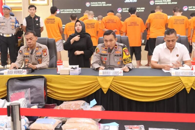 Hal ini disampaikan Wakapolres Tangsel, Kompol Muhibbur RA., S.H., M.H., CPHR., CBA., dalam konferensi pers yang digelar di Aula Guyub Polres Tangsel, Selasa (25/11/2025). Hadir dalam kegiatan tersebut Kasat Resnarkoba AKP Pardiman, S.H., M.H. serta Kasi Humas AKP Agil Sahril, S.H
