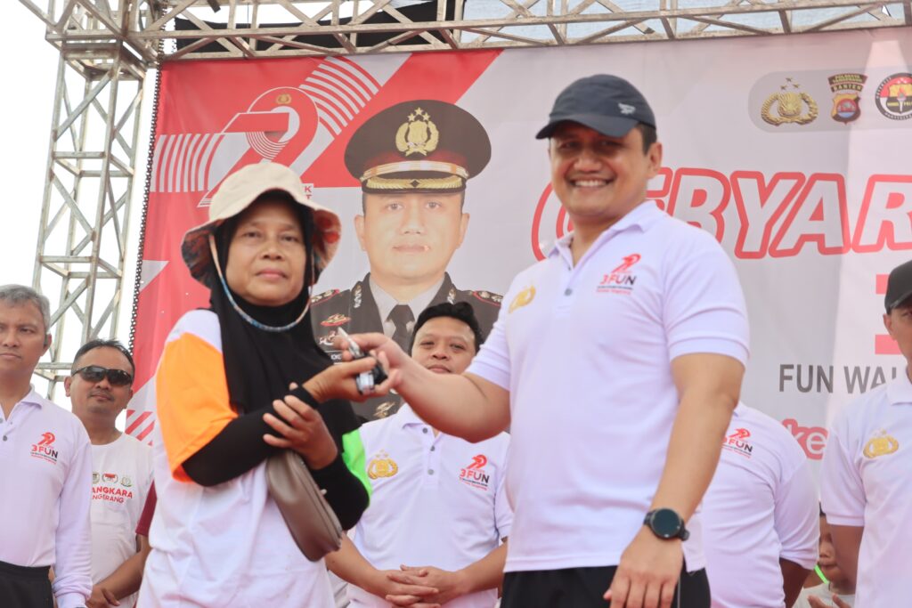 Suara62.id || Tangerang – Dalam rangka memeriahkan Hari Bhayangkara ke-79, Polresta Tangerang menggelar kegiatan Funwalk dan Funbike yang dirangkaikan dengan pembagian ratusan doorprize untuk masyarakat, Sabtu (28/6/2025). Acara ini menjadi puncak kebersamaan antara jajaran Polri dan masyarakat Kabupaten Tangerang.