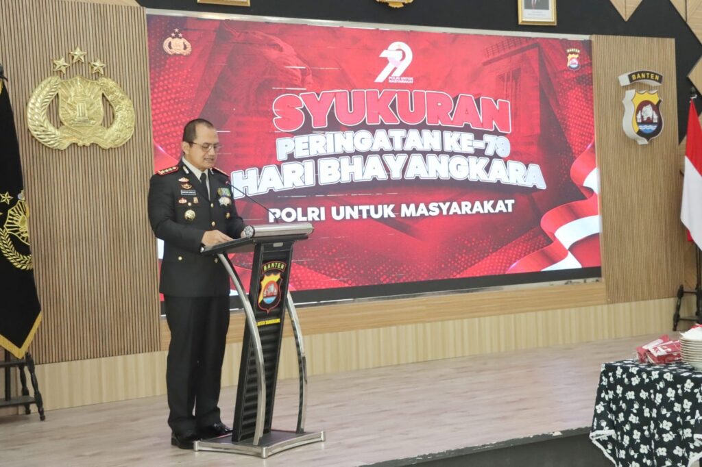 Kapolresta Tangerang Kombes Pol Baktiar Joko Mujiono, S.I.K., M.M. memimpin langsung kegiatan tersebut. Dalam sambutannya, ia menyampaikan rasa syukur atas pengabdian Polri selama 79 tahun dan menekankan pentingnya semangat transformasi menuju Polri yang Presisi dan humanis.