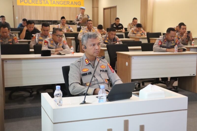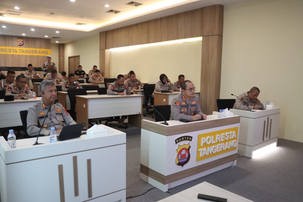 Suara62.id || Tangerang – Jajaran Polresta Tangerang mengikuti rapat koordinasi nasional ketahanan pangan yang dilaksanakan oleh Mabes Polri melalui sarana Zoom Meeting. Kegiatan ini berlangsung di ruang Video Conference (Vicon) Mapolresta Tangerang pada Rabu (19/06/2025).