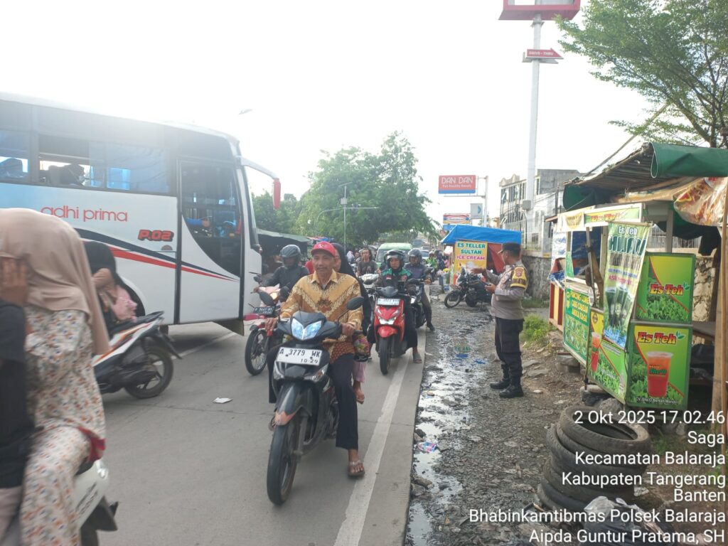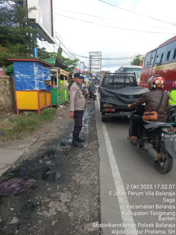 Suara62.id || Tangerang – Dalam rangka menciptakan Keamanan, Keselamatan, Ketertiban dan Kelancaran Lalulintas (Kamseltibcar Lantas), Aipda Guntur Pratama SH dari Polsek Balaraja melaksanakan kegiatan PECAK sore hari di Jln Raya Kresek Pasar Sentiong Kecamatan Balaraja Wilayah Hukum Polsek Balaraja Polresta Tangerang. Kamis (02/10/2025)