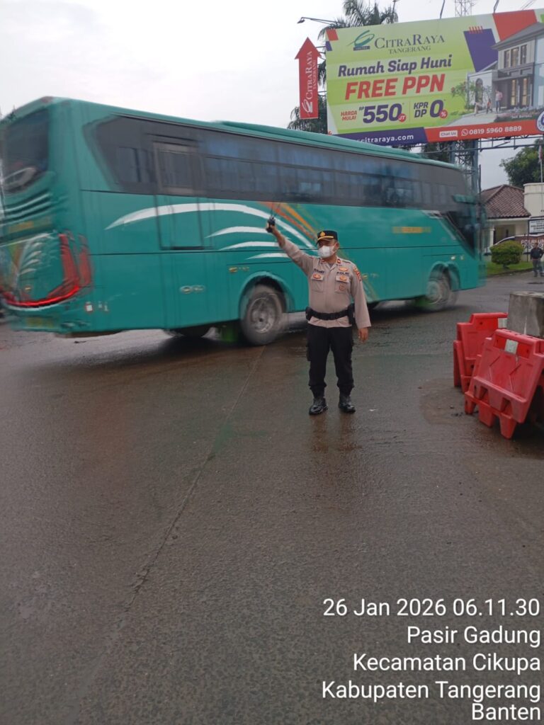 Suara62.id || Cikupa, Tangerang — Dalam rangka memberikan pelayanan prima kepada masyarakat serta menciptakan keamanan, keselamatan, ketertiban, dan kelancaran lalu lintas (kamseltibcar lantas), Polsek Cikupa melaksanakan kegiatan pengaturan lalu lintas pagi hari di Perempatan Lampu Merah Cikupa Mas, Senin (26/1/2026).