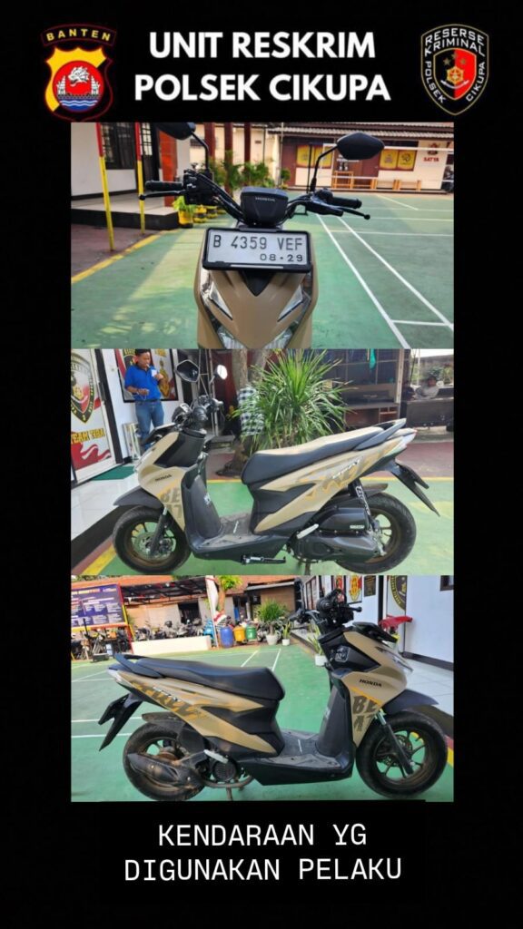 Kapolsek Cikupa Kompol Johan Armando Utan, S.I.K., M.H., menjelaskan, korban memarkirkan kendaraannya di depan rumah namun lupa mengunci stang. Saat kembali ke rumah, motor sudah hilang. Korban lalu melaporkan kejadian tersebut ke Polsek Cikupa.