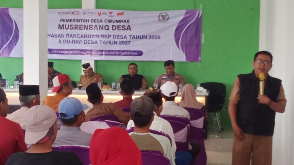 Suara62.id || Tangerang – Pemerintah Desa Cirumpak, Kecamatan Kronjo, Kabupaten Tangerang, menggelar Musyawarah Perencanaan Pembangunan Desa (Musrenbangdes) terkait Rancangan RKP Desa Tahun 2026 dan DU-RKP Desa Tahun 2027, Selasa (21/10/2025).