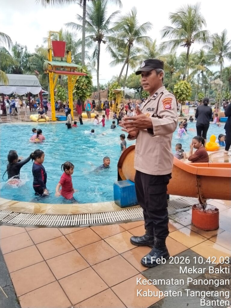 Suara62.id || Kab Tangerang – Guna menciptakan situasi keamanan dan ketertiban masyarakat (kamtibmas) yang aman dan kondusif, Polsek Panongan, Polresta Tangerang, melaksanakan Patroli PUSAKA (Patroli Jalan Kaki pada Pusat Keramaian) di kawasan wisata Water World Citra Raya, Desa Mekar Bakti, Kecamatan Panongan, Kabupaten Tangerang, Minggu (1/2/2026).