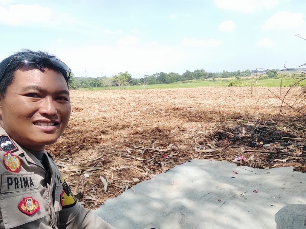 AIPDA Prima Yananta, S.H., Bhabinkamtibmas Desa Rancakalapa, bersama Kelompok Tani Rancagabus meninjau langsung kesiapan lahan yang direncanakan untuk penanaman jagung hibrida seluas dua hektare dalam program “Satu Desa Dua Hektare”.