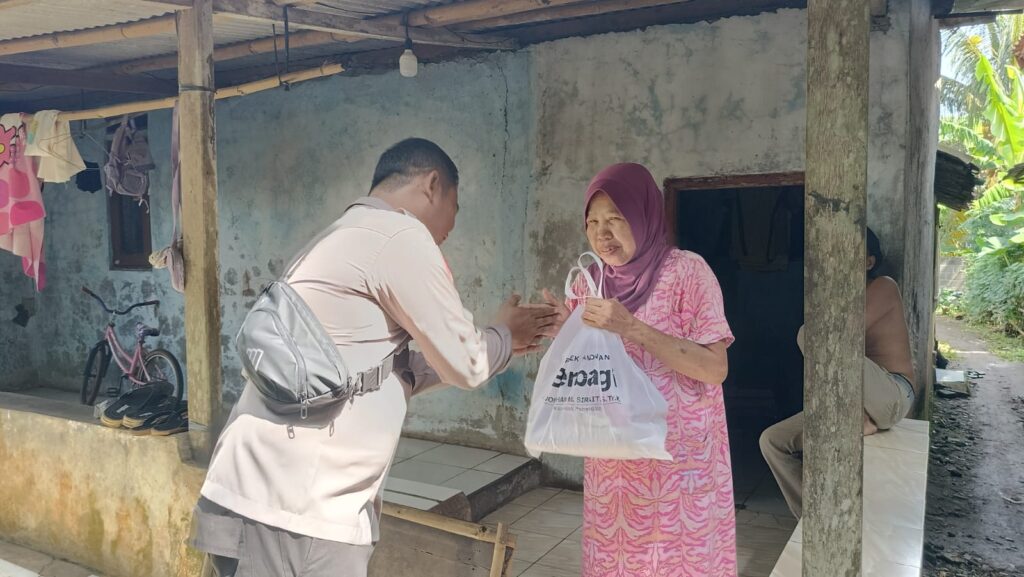 Selain menyalurkan bantuan, kegiatan ini juga menjadi kesempatan bagi Bhabinkamtibmas untuk berdialog dengan masyarakat, menyampaikan pesan kamtibmas, sekaligus memastikan lingkungan tetap aman dan kondusif.