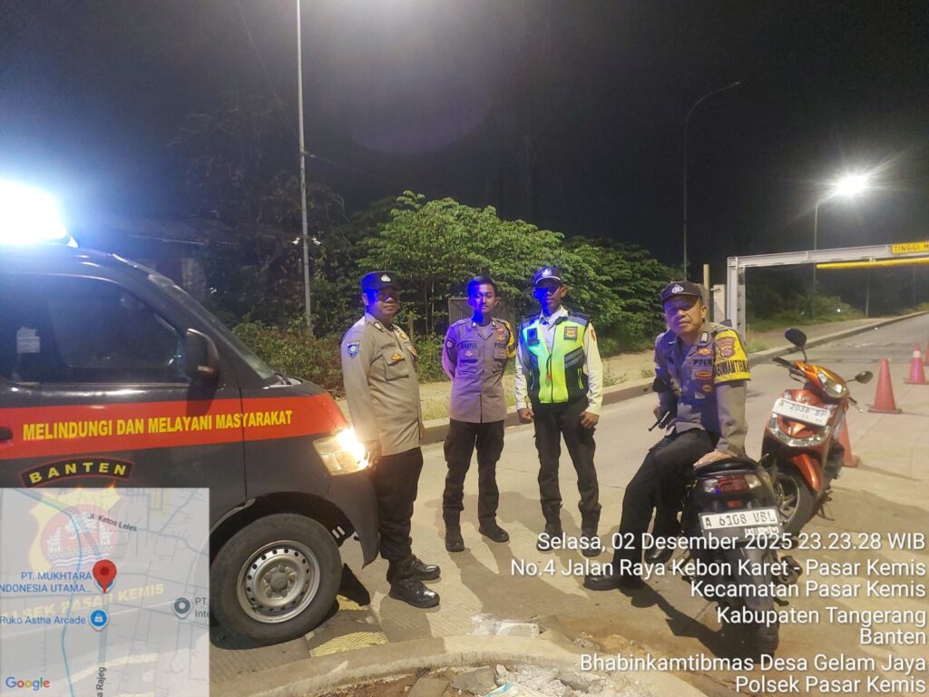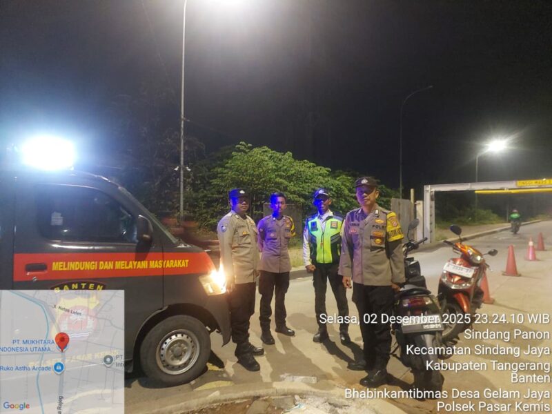 Suara62.id || Kab Tangerang – Polsek Pasar Kemis melaksanakan Patroli Mobile dan patroli kewilayahan pada Selasa malam (02/12/2025) pukul 23.30 WIB sebagai bagian dari Ops Cipkon untuk mengantisipasi 3C, premanisme, balap liar, geng motor, tawuran remaja, dan gangguan kamtibmas lainnya.