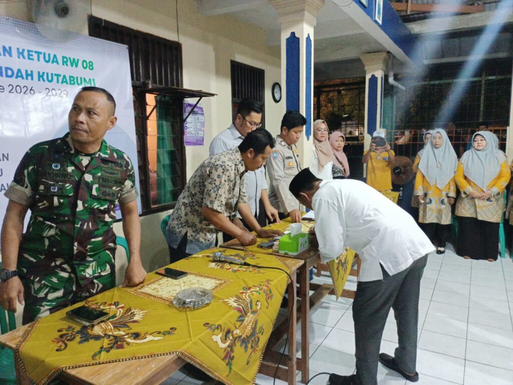 Kegiatan tersebut dihadiri oleh Lurah Kutabumi Ade Sunaryo, S.Pd., M.M., jajaran kelurahan, Babinsa, Bhabinkamtibmas, tokoh agama, tokoh masyarakat, panitia pelaksana, serta warga RW 08 Pondok Indah. Pelantikan dilakukan langsung oleh Lurah Kutabumi melalui pengambilan sumpah jabatan dan penandatanganan Surat Keputusan Ketua RW.