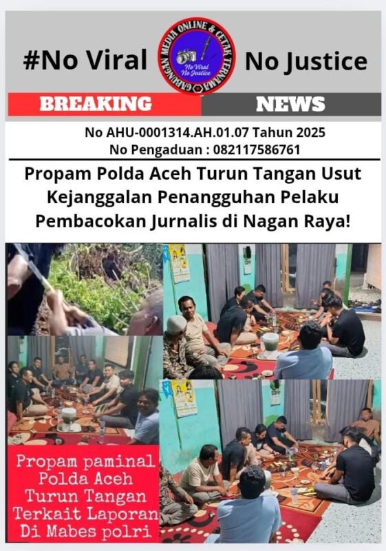 Tim Propam Paminal Polda Aceh menyambangi kediaman Ridwanto di Desa Serbaguna, Darul Makmur, Jumat malam (26/9/2025), untuk mengumpulkan fakta terkait laporan yang telah dilayangkan ke Propam Mabes Polri. Langkah ini diambil setelah Mabes Polri memberikan disposisi khusus terkait kasus yang menimpa jurnalis yang aktif menginvestigasi dugaan persoalan lahan di Nagan Raya tersebut.