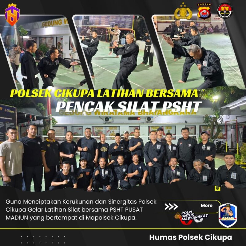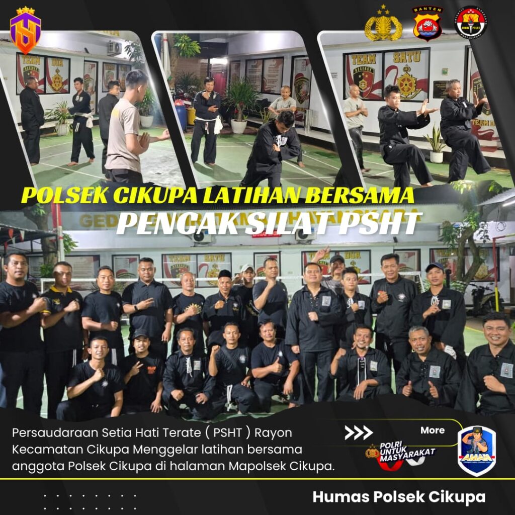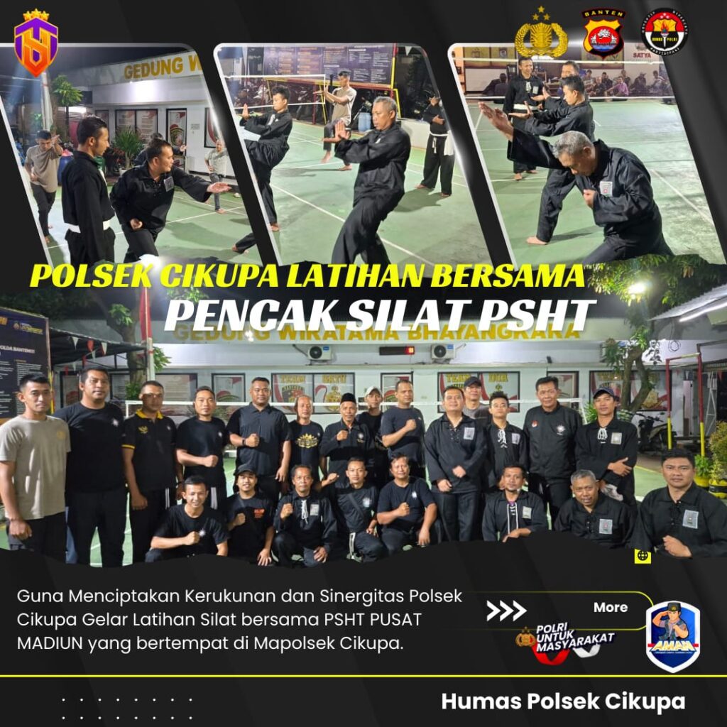 Suara62.id || Cikupa, 23 September 2025 — Persaudaraan Setia Hati Terate (PSHT) Rayon Kec. Cikupa menggelar latihan silat bersama anggota Kepolisian Sektor (Polsek) Cikupa di halaman Mapolsek Cikupa, Selasa (23/9). Kegiatan ini merupakan bagian dari upaya mempererat sinergi antara aparat kepolisian dan masyarakat, khususnya kalangan perguruan silat.