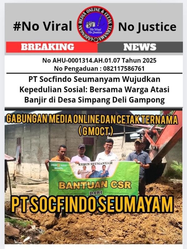 Kegiatan ini juga menegaskan peran PT Socfindo Seumanyam sebagai perusahaan yang tidak hanya fokus pada produktivitas, tetapi juga pada tanggung jawab sosial dan kemanusiaan. Melalui sinergi antara perusahaan dan masyarakat, diharapkan lingkungan desa menjadi lebih bersih, sehat, dan terbebas dari ancaman banjir.