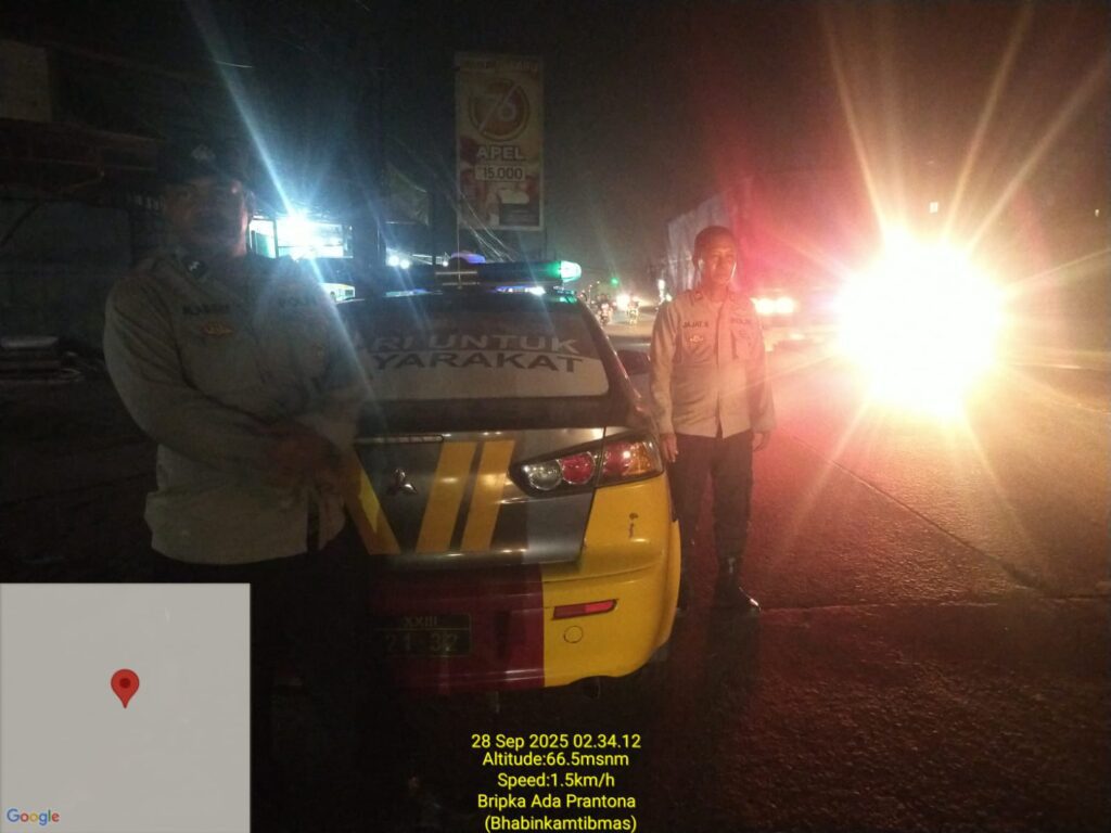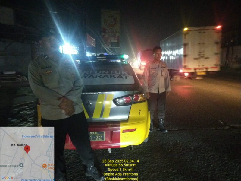Kegiatan Rutinitas KRYD Patroli Preventif yang di Pimpin oleh Pawas Iptu Jajat bersama Personil Piket Fungsi Polsek Balaraja pada Malam hari guna mencegah dan mengantisipasi Guantibmas di Jalan Raya Serang Pertigaan Oleg Desa Sentul Kecamatan Balaraja – Kab. Tangerang. Minggu (28/09/2025).