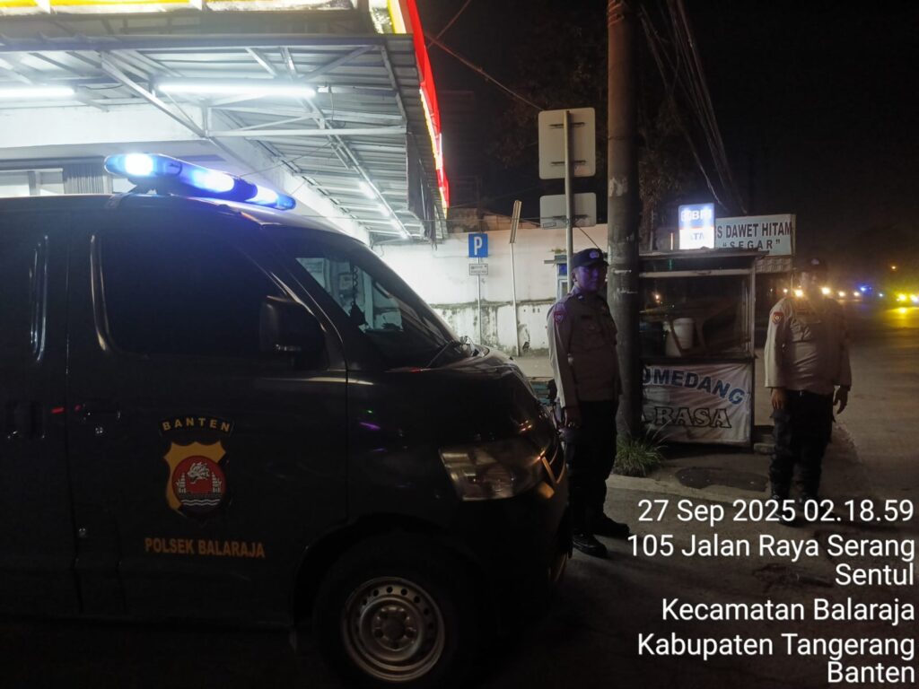 Suara62.id || Kabupaten Tangerang – Dalam rangka menjaga kondusifitas wilayah, Personil Piket Fungsi Polsek Balaraja Polresta Tangerang yang di Pimpin oleh Pawas Iptu Jajat melaksanakan Patroli Malam Operasi Cipta Kondisi (Ops Cipkon) di Jln Raya Serang, Alfamidi Nagreg Sentul Kecamatan Balaraja – Kab. Tangerang. Sabtu (27/09/2025).