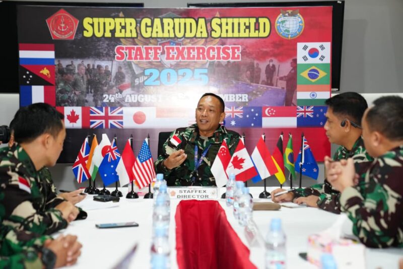 Suara62.id || (Puspen TNI) – Kolaborasi militer Indonesia dengan 13 negara sahabat dalam Staffex (Staff Exercise) pada rangkaian Latihan Gabungan Bersama Multinasional Super Garuda Shield (SGS) 2025, berlangsung selama 11 hari, dari tanggal 25 Agustus sampai dengan 4 September 2025, bertempat di Seskoal, Jakarta.