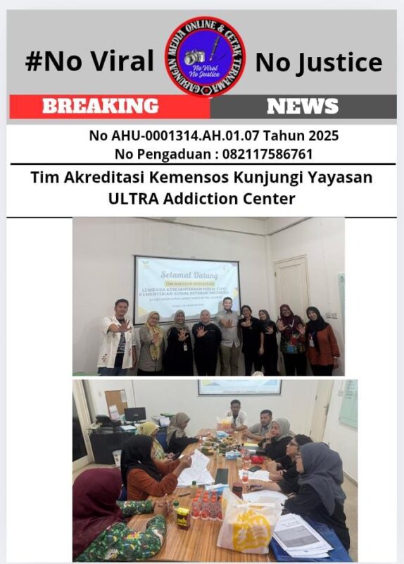 Suara62.id || Jakarta (GMOCT) 30 Agustus 2025 – Yayasan ULTRA Addiction Center menerima kunjungan dari Tim Akreditasi Kementerian Sosial Republik Indonesia (Kemensos RI) pada Kamis, 28 Agustus 2025. Kunjungan ini merupakan bagian dari proses perpanjangan akreditasi lembaga rehabilitasi sosial yang dikelola oleh yayasan tersebut.