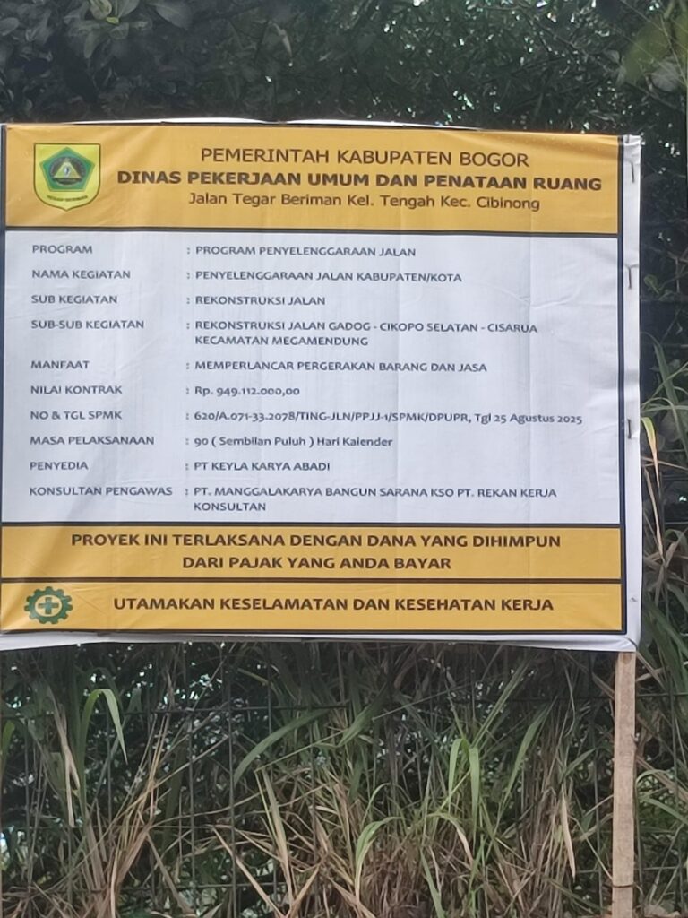 Hingga berita ini diterbitkan, belum ada keterangan resmi dari pihak Dinas PUPR Kabupaten Bogor terkait penyebab keterlambatan pekerjaan.