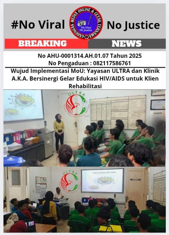 Suara62.id || Jakarta 26 September 2025 (GMOCT) – Sebagai wujud nyata implementasi MoU, Yayasan ULTRA Addiction Center bekerja sama dengan Klinik A.K.A. sukses menggelar edukasi HIV/AIDS bagi klien yang tengah menjalani rehabilitasi (22/09/2025). Kegiatan ini bertujuan meningkatkan kesadaran dan pengetahuan tentang HIV/AIDS di kalangan pengguna Napza yang rentan.