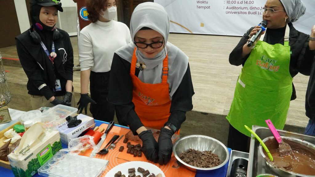 Kegiatan ini menghadirkan Ermey Trisniarty, Founder Dapur Coklat, yang berbagi kisah bagaimana kecintaannya pada cokelat berkembang menjadi bisnis sukses dengan puluhan cabang di Indonesia.