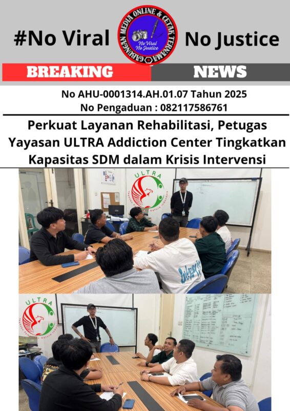 Suara62.id | JAKARTA – Dalam upaya meningkatkan kualitas layanan rehabilitasi Narkoba, Psikotropika, dan Zat Adiktif Lainnya (Napza), Yayasan ULTRA Addiction Center telah menyelenggarakan kegiatan Peningkatan Kapasitas Sumber Daya Manusia (SDM) dengan fokus pada tema Krisis Intervensi. Kegiatan ini diikuti oleh para konselor dan asisten konselor yang terlibat langsung dalam proses pemulihan klien.